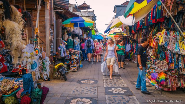 Ubud Art Market, locally referred to as ‘Pasar Seni Ubud’ is located opposite the the Puri Saren Royal Ubud Palace and is open daily. Here you can find beautiful silk scarves, lightweight shirts, handmade woven bags, baskets or hats; statues, kites and many other hand-crafted goods. Most of the goods found at the Ubud Market are made in the neighbouring villages of Pengosekan, Tegallalang, Payangan and Peliatan. The location of the Ubud Art Market which is centred among the art producing villages, and being just opposite the royal palace which is a centre point to Ubud itself, make it a strategic shopping place for Balinese handicrafts and souvenirs